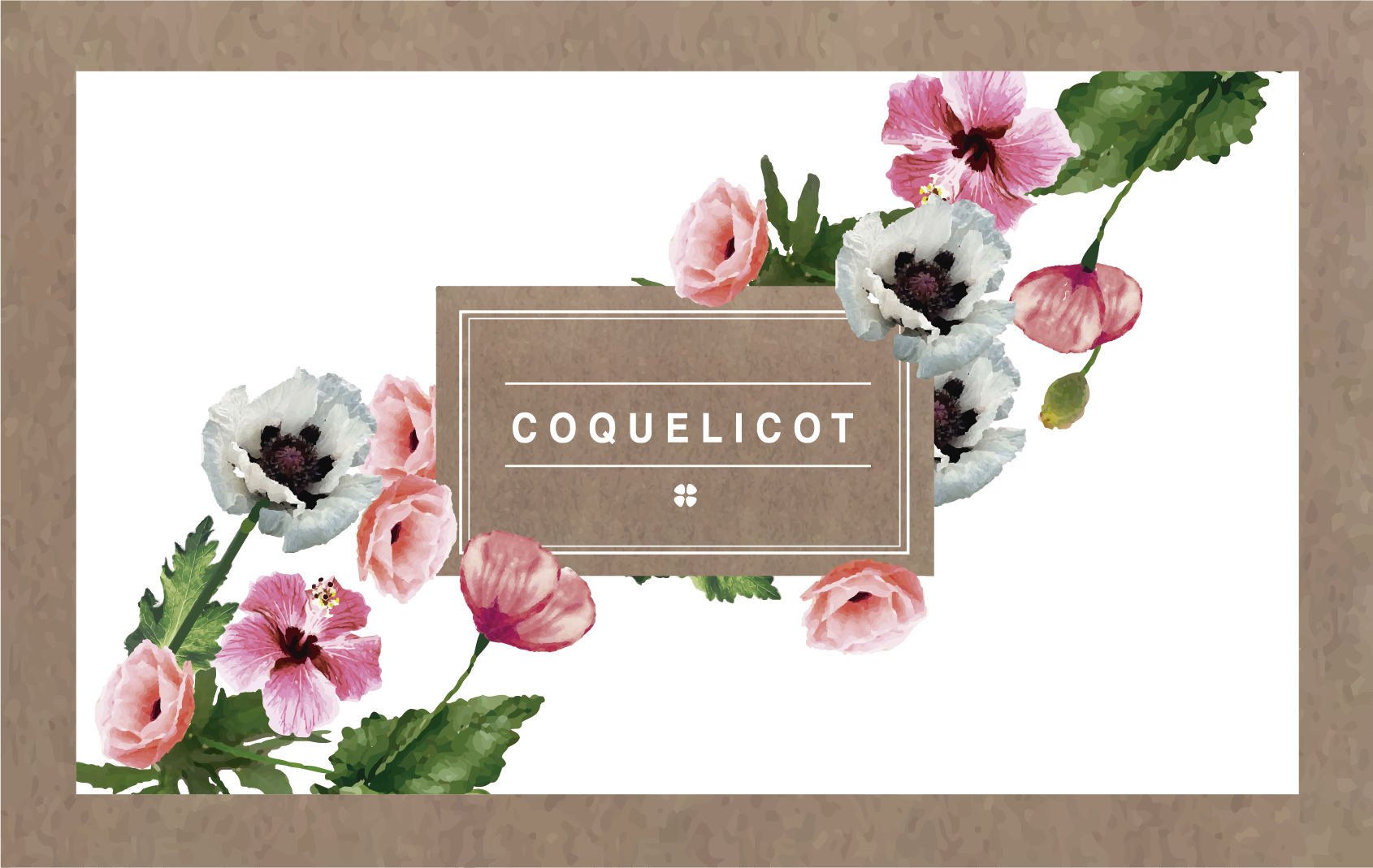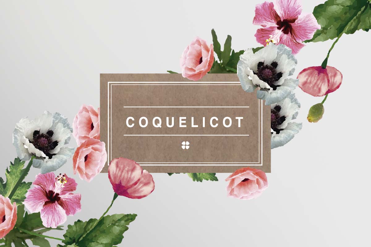 El cliente deseaba un diseño floral, que reflejara el nombre Coquelicot y la delicadeza de las prendas, combinado con la textura del papel Kraft.